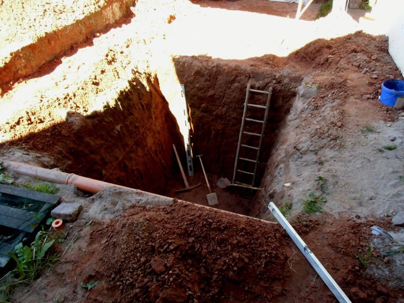 Wir haben unsere Terrasse ausgehoben, aber keinen Schatz gefunden. Die Grube misst 2m x 2m x 2m und wurde für eine Regenwasserzisterne ausgehoben. Unter dem Terrasenbelag, ein betonierter Boden, der jetzt auch weg ist, fanden sich viele Bruchstücke aus Sandsteinplatten. Früher einmal war der Außenbereich mit Sandstein gepflastert, leider wurde alles überbetoniert, wodurch der Sandstein im feuchten Boden lag und nicht mehr trocknen konnte und größtenteils zerbrochen ist. Einen Teil der Bruchstücke können wir noch weiterverwenden für die spätere Gestaltung.
